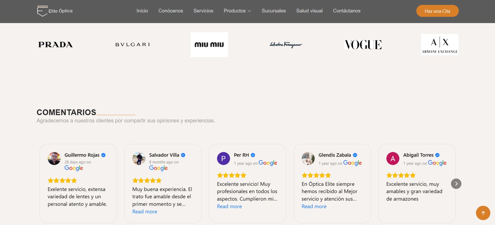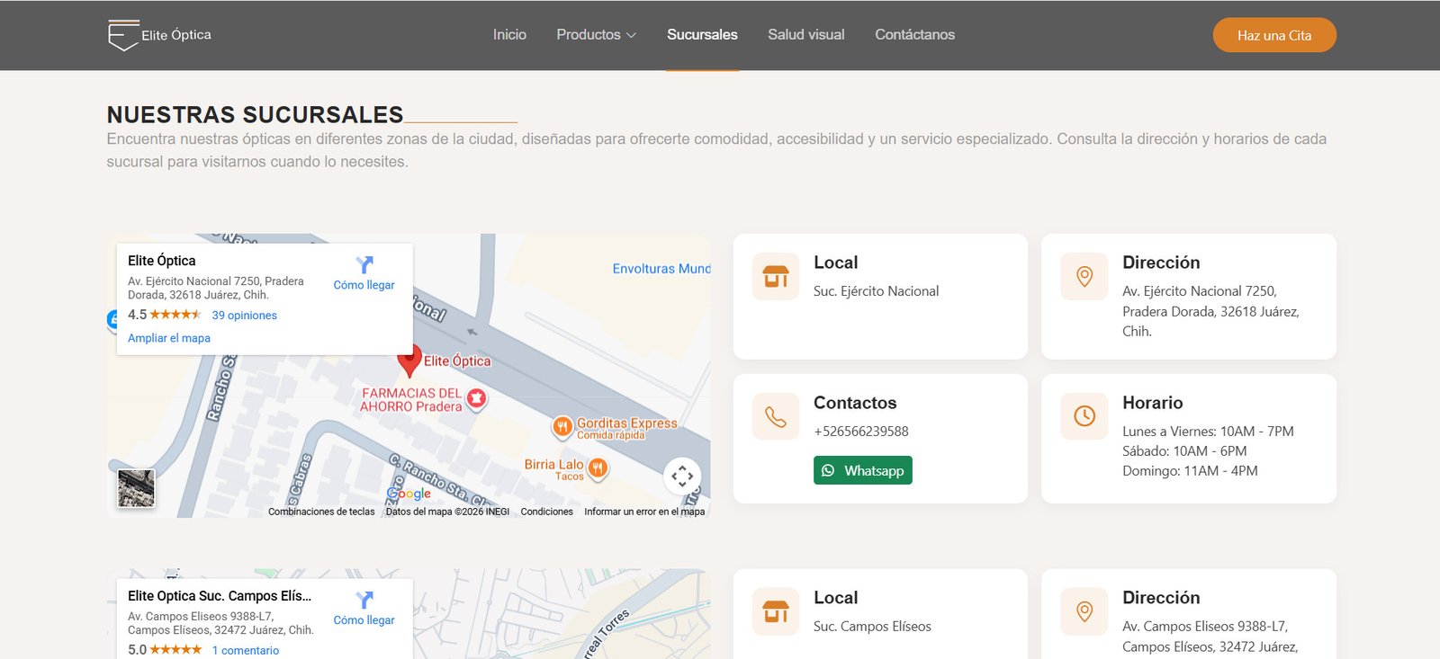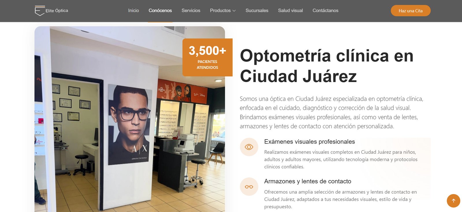 Elite Óptica | Proyecto Web desarrollado por JordyDev en Ciudad Juárez
