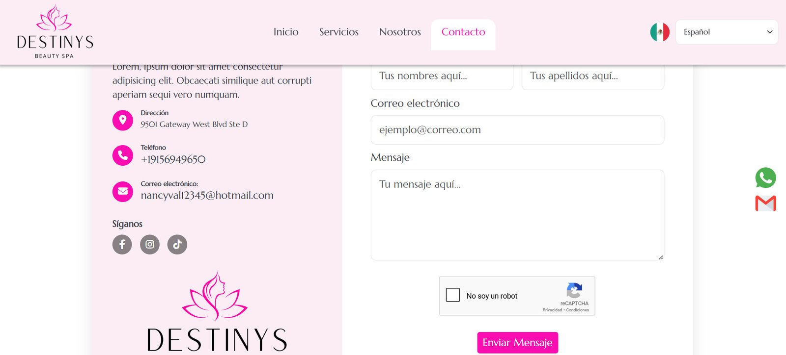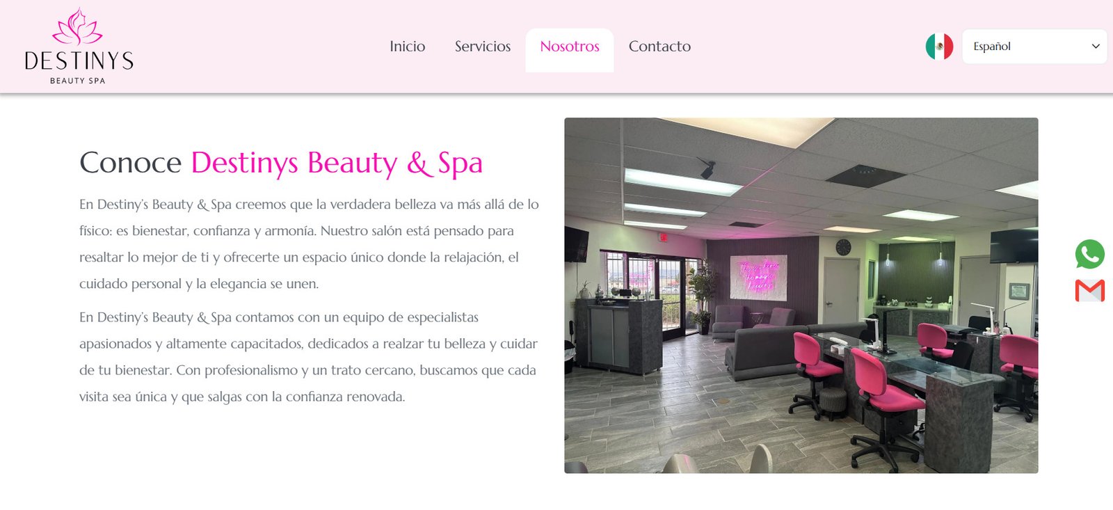 Destinys Beauty Spa | Proyecto Web desarrollado por JordyDev en Ciudad Juárez